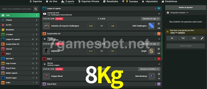 A aposta 8Kg oferece aos jogadores a experiência mais conveniente de apostas em eSports!